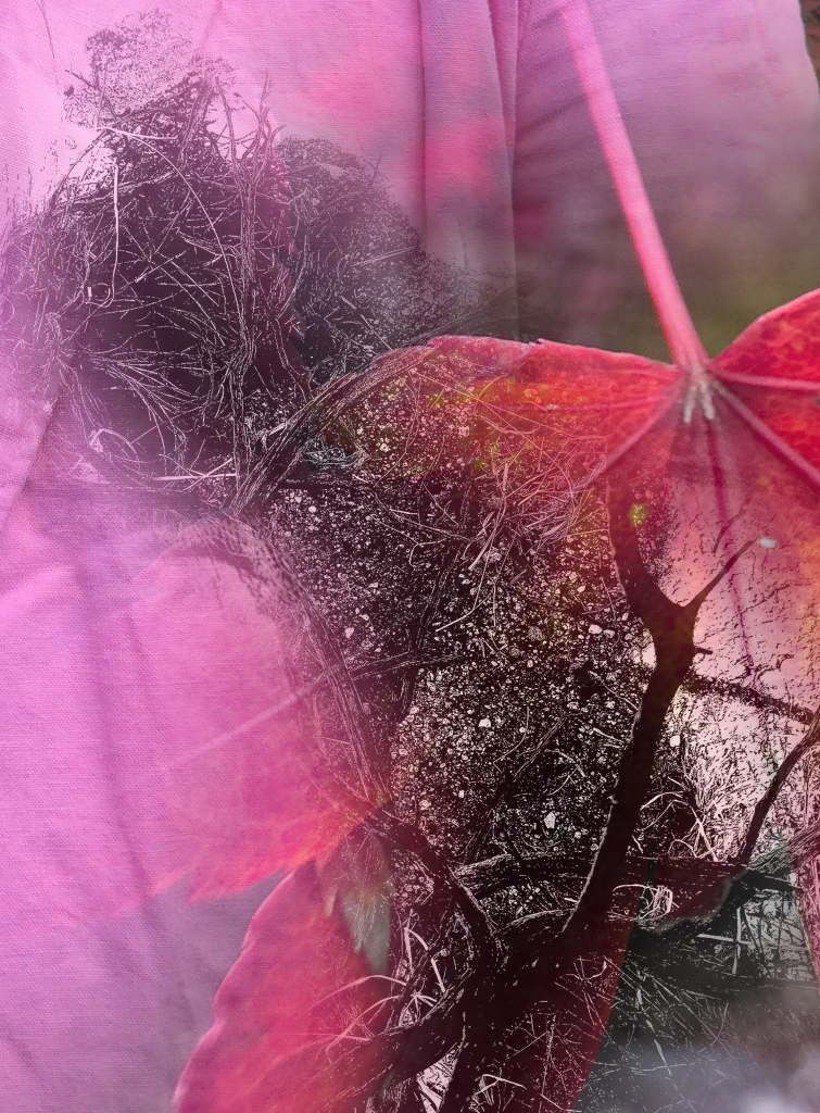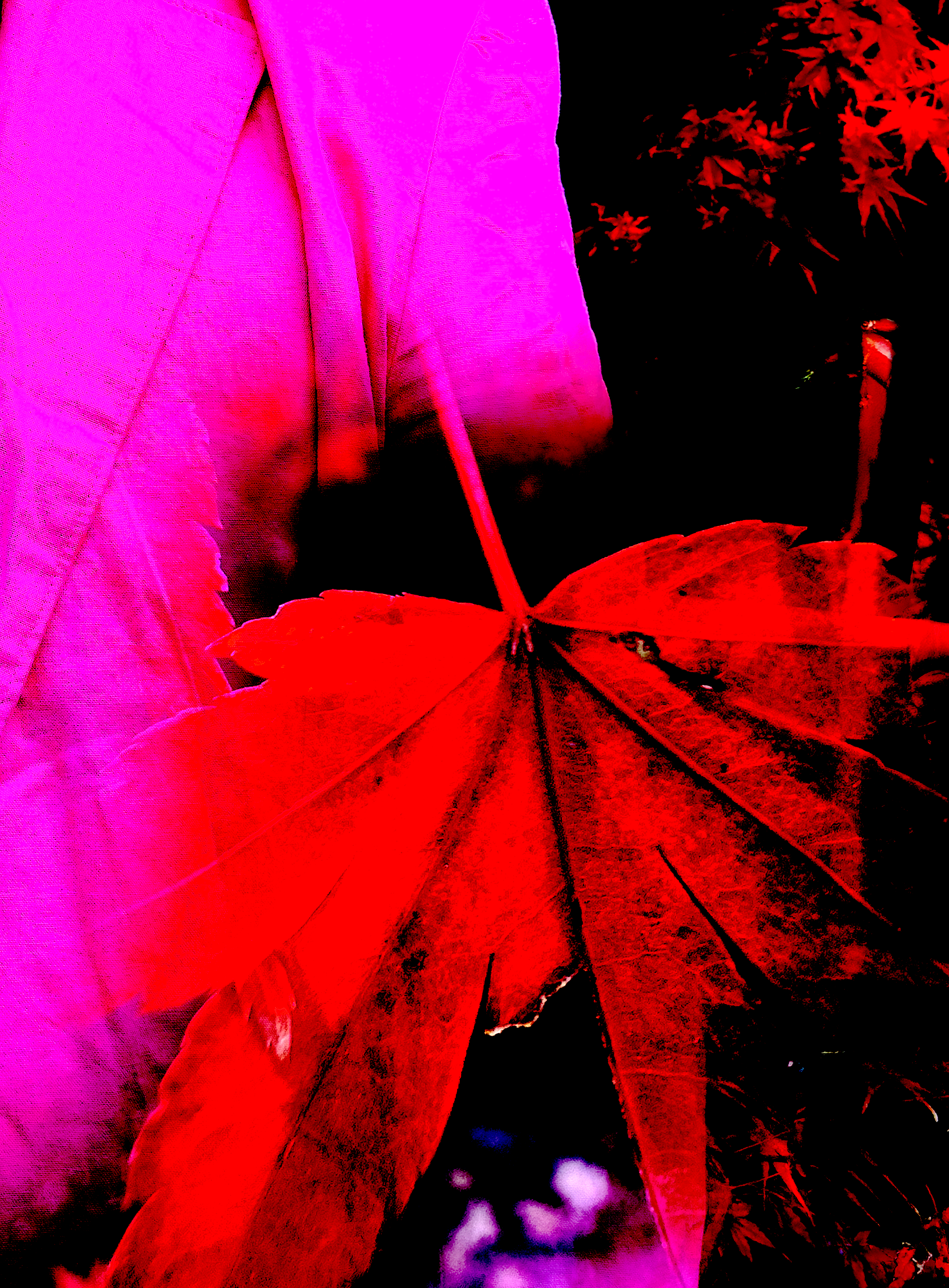 The below pink suit is getting an outing to remember, as I embellish it with Centrallian starkness. The leaf is punctuated with foliate lungs, bringing the whole image into arborial focus.