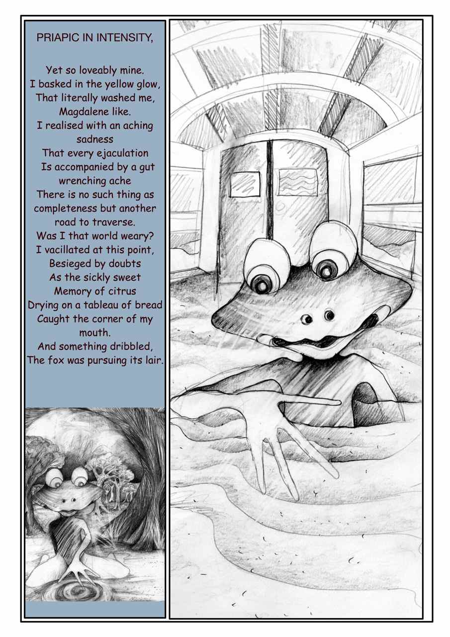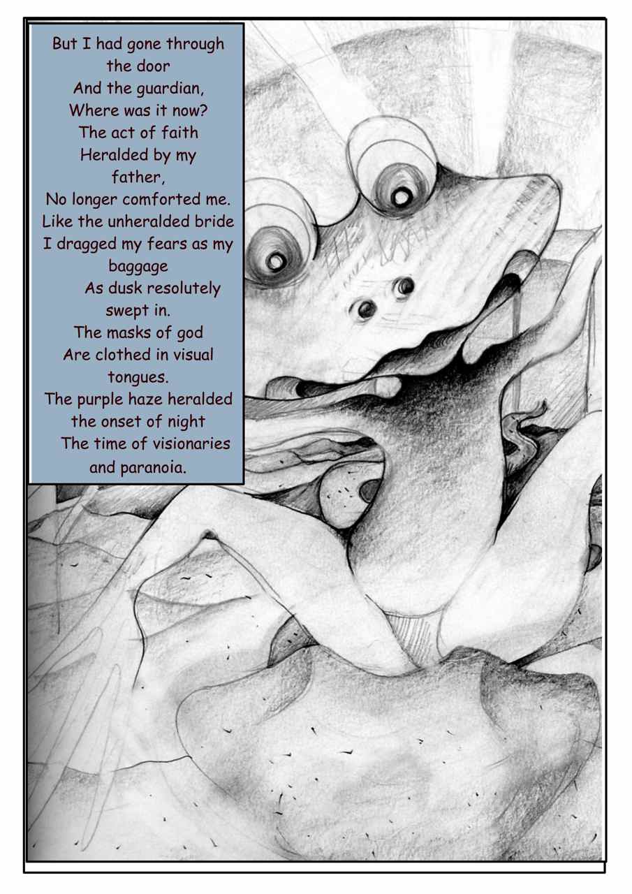 My journeyman, the frog, appeared as an epiphanic character showing the way to an illumination of sorts, through the vehicle of glass or its seminal element, silica.